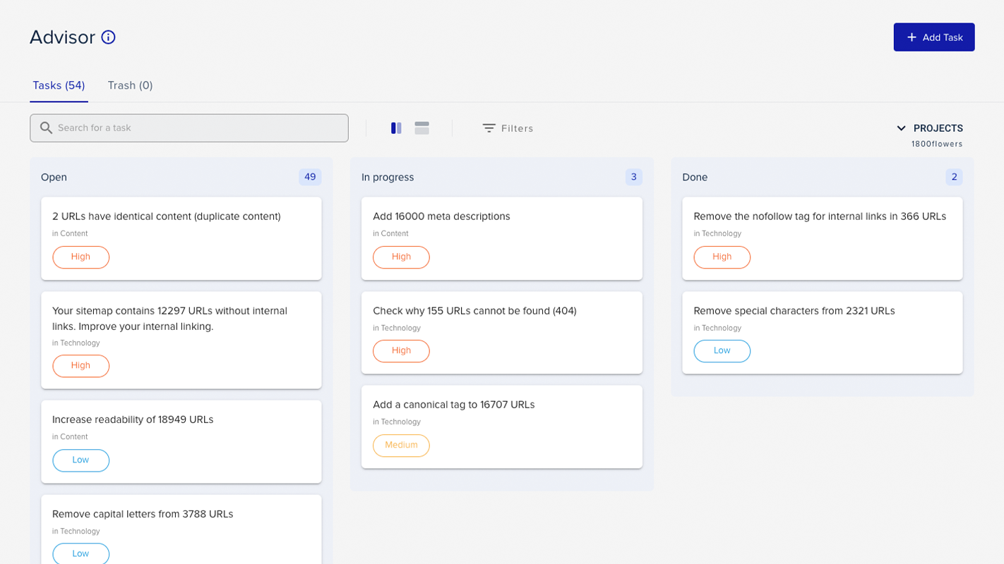 As mentioned above, tasks are a mix of standard basic SEO measures and issues found in weekly automated audits of your website.